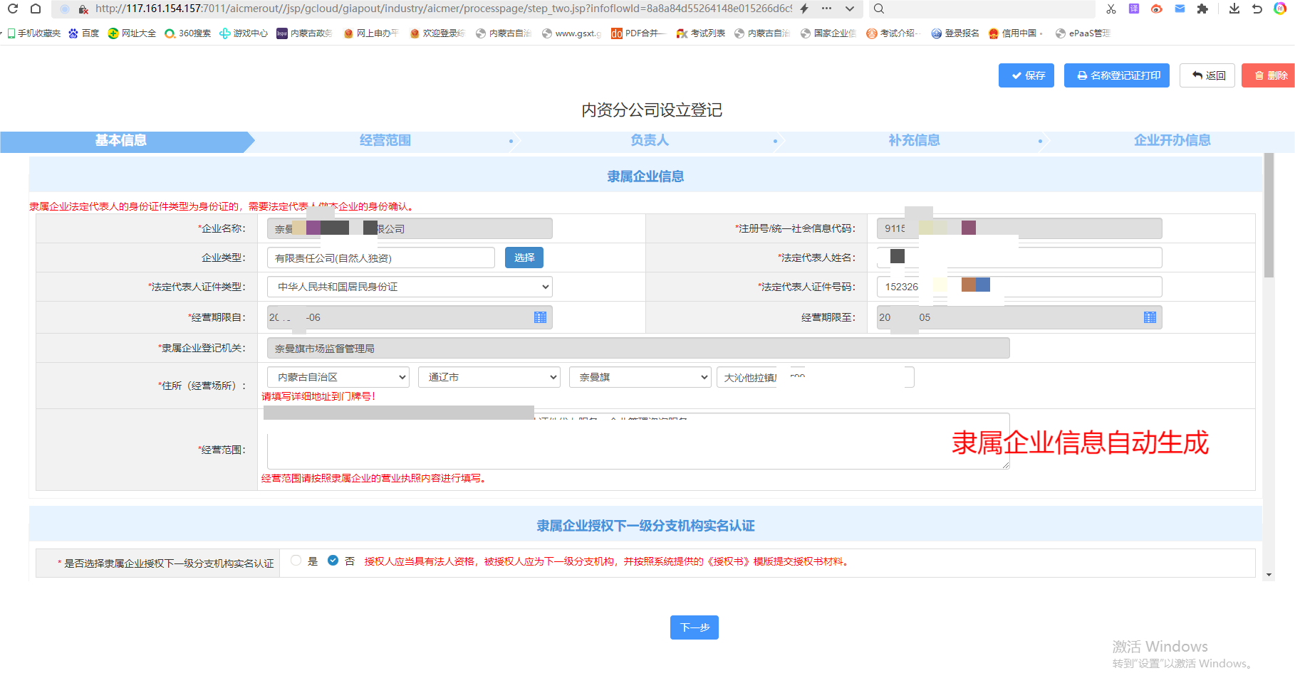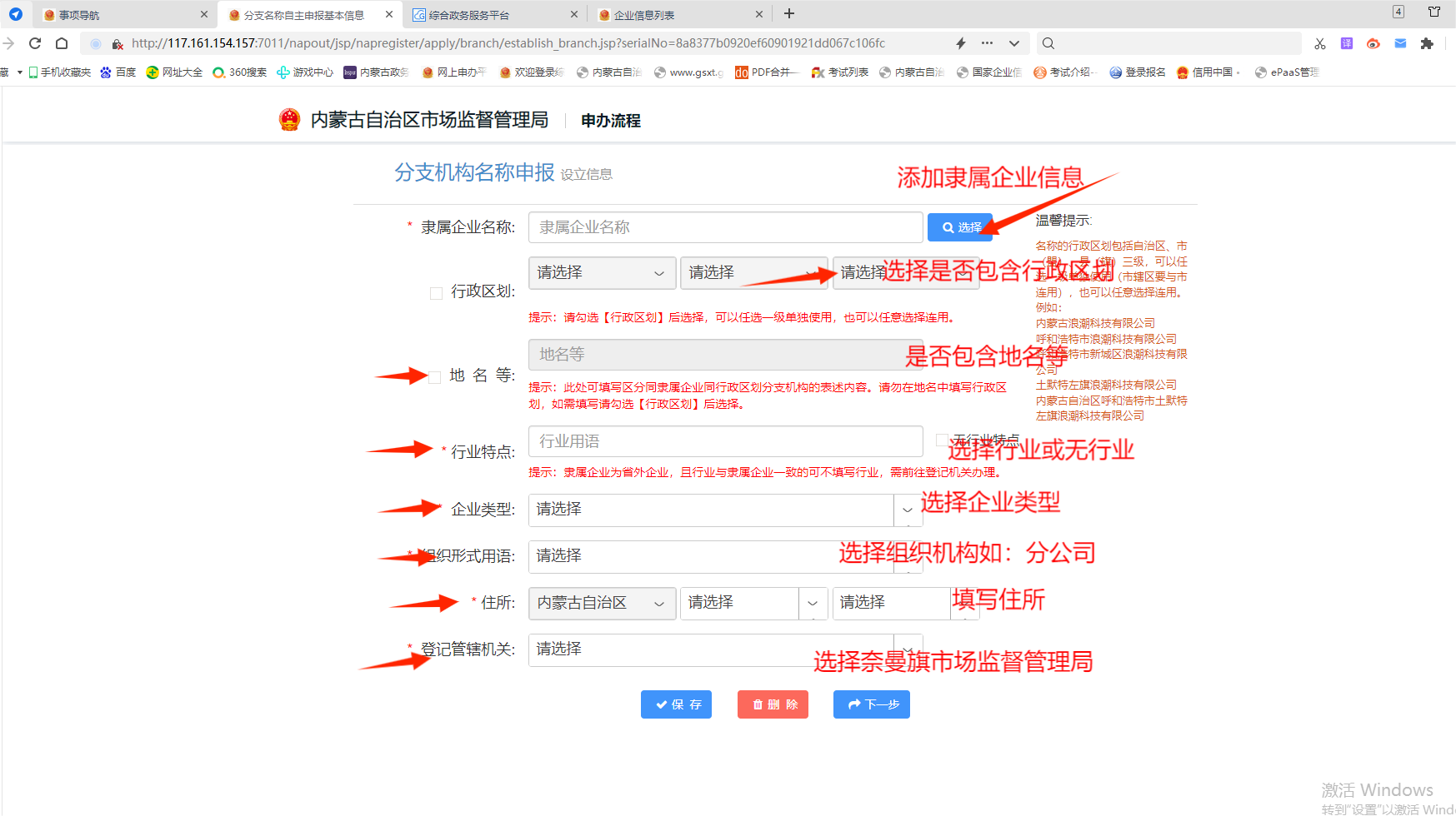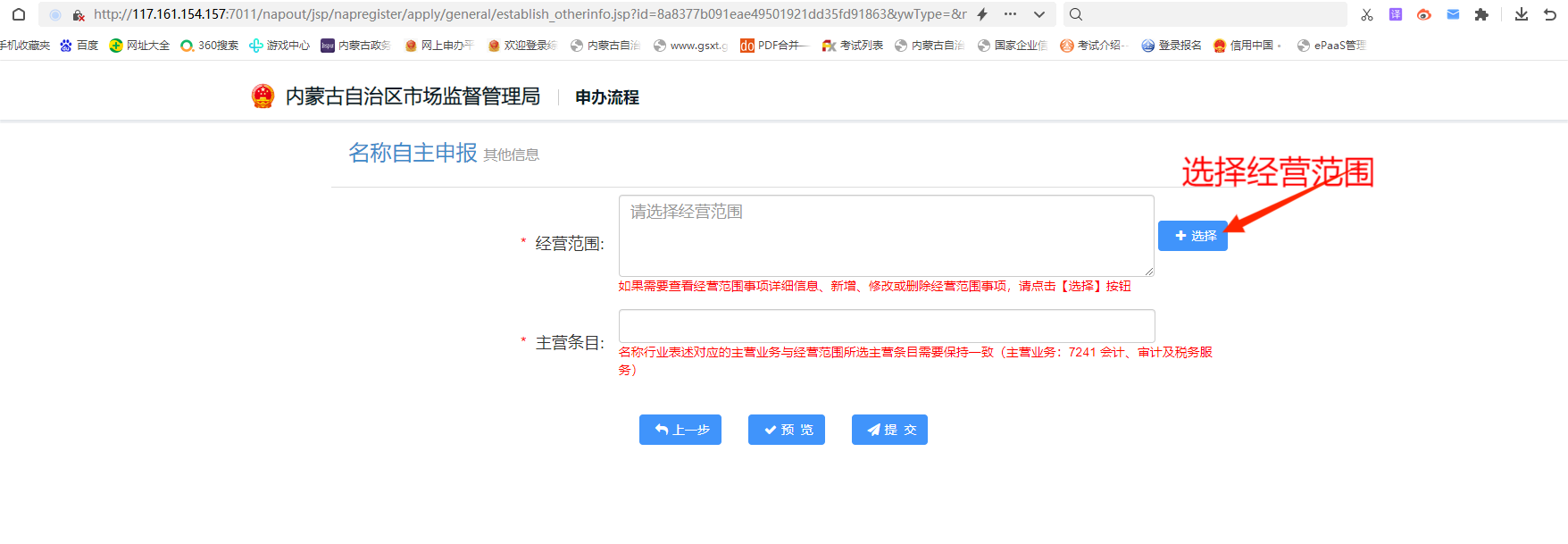 企业登录内蒙古自治区市场监督管理局网上申办平台